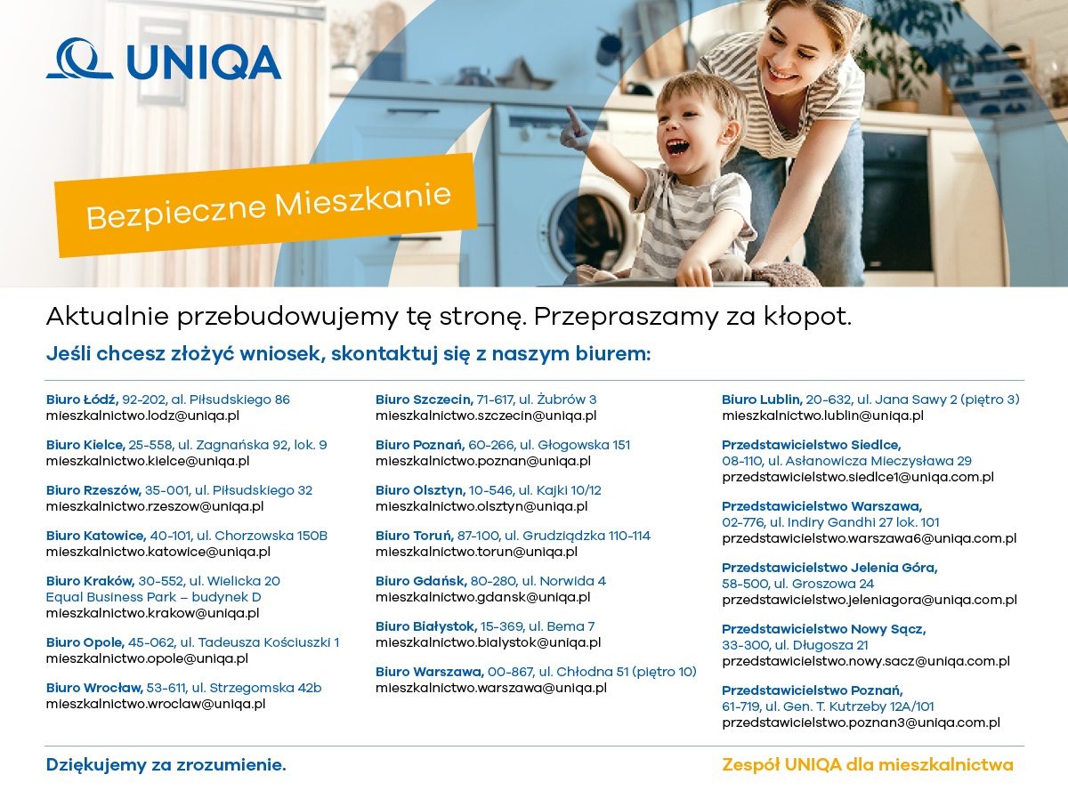 Pod adresem https://mieszkania.uniqa24.pl udostępnione są wszelkie niezbędne informacje dotyczące ubezpieczenia.